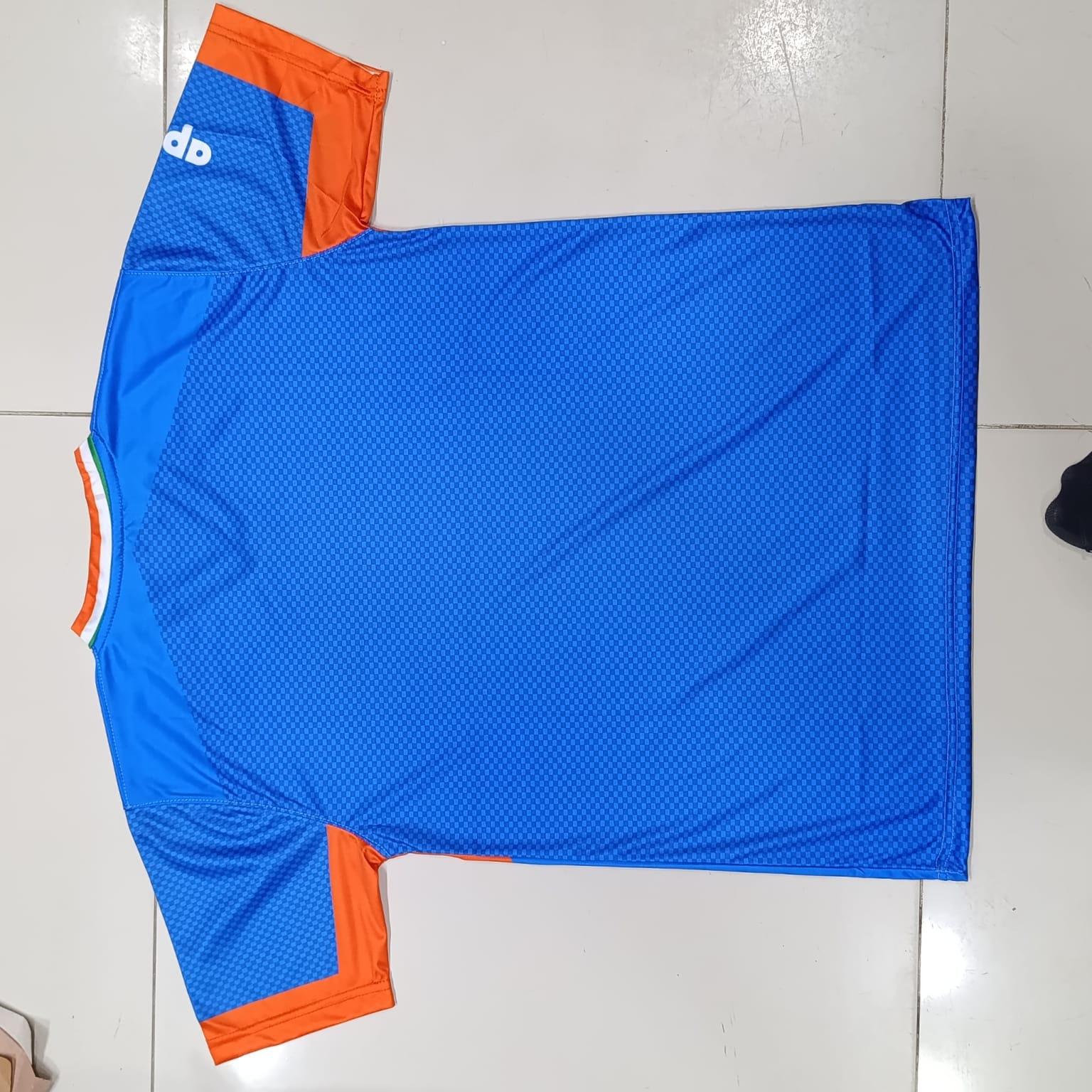 “INDIA” printed in orange on the front, with sponsor logos (e.g., Apollo Tyres) and the BCCI crest.